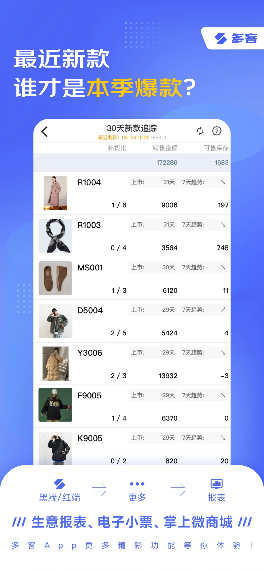 多客报表功能除了具备新增客户、销量、毛利率、交易金额等日报表!